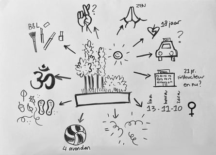 We moesten elkaar aan elkaar voorstellen. Snap je het nog? Ik leg het uit: Ik ging in gesprek met iemand, en daarna moest ik aan de groep vertellen wie het was. Zo is het namelijk wat leuker luisteren en interactief. Je mocht zelf kiezen in welke vorm je dat wilde doen. Ik voelde behoorlijk wat creatieve-druk (want ja, die kunstacademie-achtergrond), maar het lukte me om op een ontspannen manier toch wat creativiteit te laten zien. Ondanks mijn drukke ADHD/HSP-hoofd lukte het om structuur te brengen in het verhaal en ook nog om dat te illustreren. 2 vliegen in 1 klap, ik wil namelijk wat meer illustreren en dat op mijn website laten zien.
