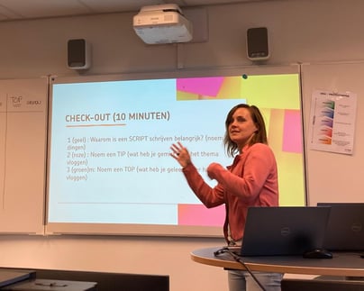Met onze onderwijskundige nam ik die middag ook nog wat leerdoelen door. We zijn namelijk bezig de juiste leerdoelen te koppelen aan MarketingLAB. Daarna bespreek ik met de collega’s, waar ik de volgende dag MarketingLAB mee geef, de les nog even door.