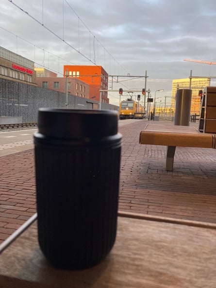 En het is gelukt!! 7.18 uur: we zitten in de auto. Om 7.29 stappen we binnen bij de opvang en om 7.42 zit ik weer in de auto richting station Breda! Ruim op tijd voor dat 2e bakkie koffie bij AH in mijn zelf meegenomen beker (want dat is duurzaam en scheelt 25 cent 😉). Lopend naar het perron nog even bellen met vriend-lief die onderweg is naar Den Haag en we zijn dan nu echt helemaal ready to go!! Op naar dag 3 van de PDG…Â